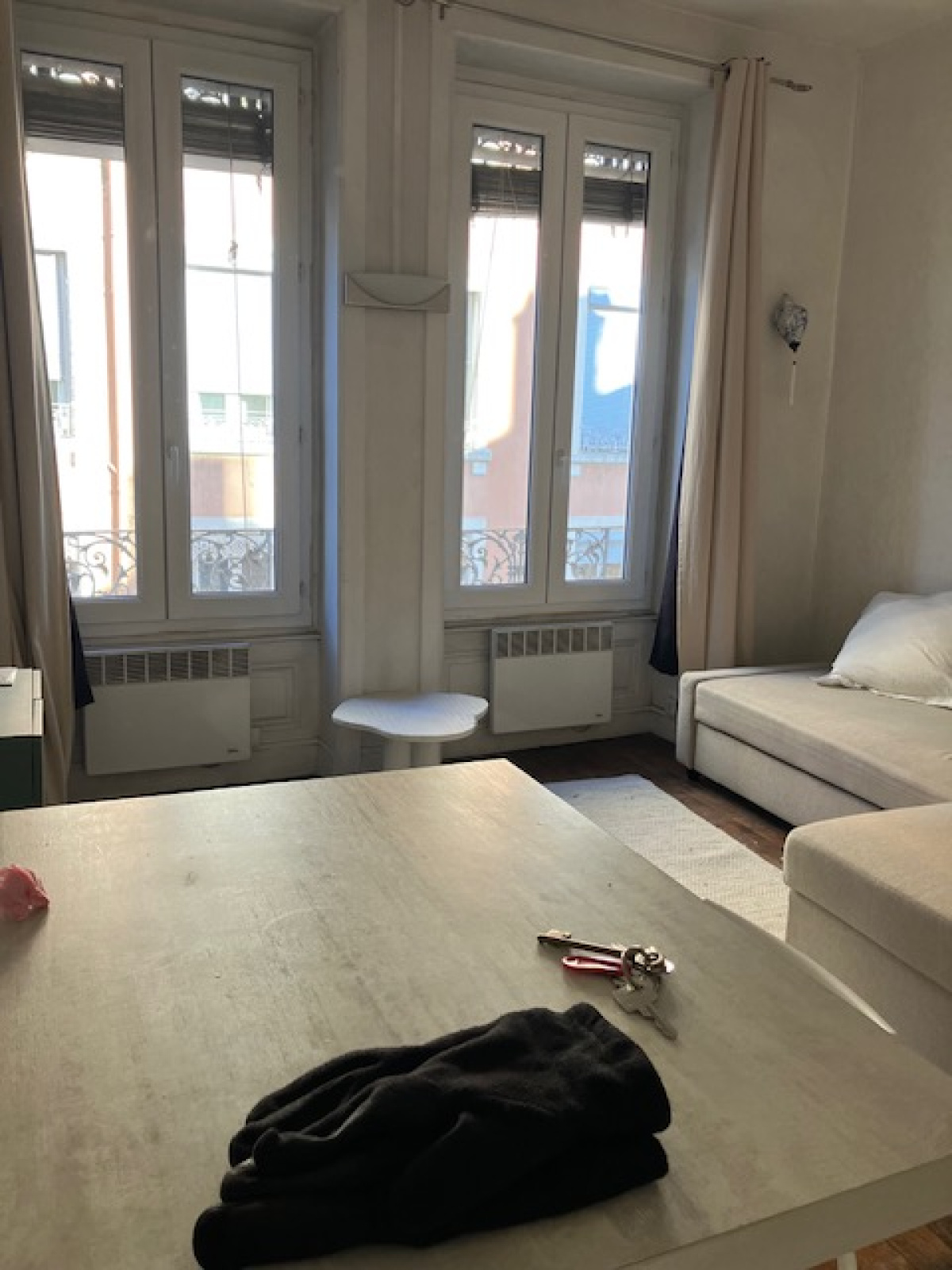 1 studio de 25 m2 au 2 ème étage au 95 rue Robert 69006 LYON , se composant d'une grande pièce avec deux grandes fenêtres double vitrage , 2 placards, 1 cheminée décorative , 1 bar américain , 1 coin cuisine équipée , 1 salle d'eau avec douche , lavabo et wc , entrée immeuble avec digicode ,chauffage par convecteurs électrique ,Gare S.N.C.F et Centre Commercial de la Part-Dieu à 5 minutes à pieds , ligne de bus et station de métro à proximité