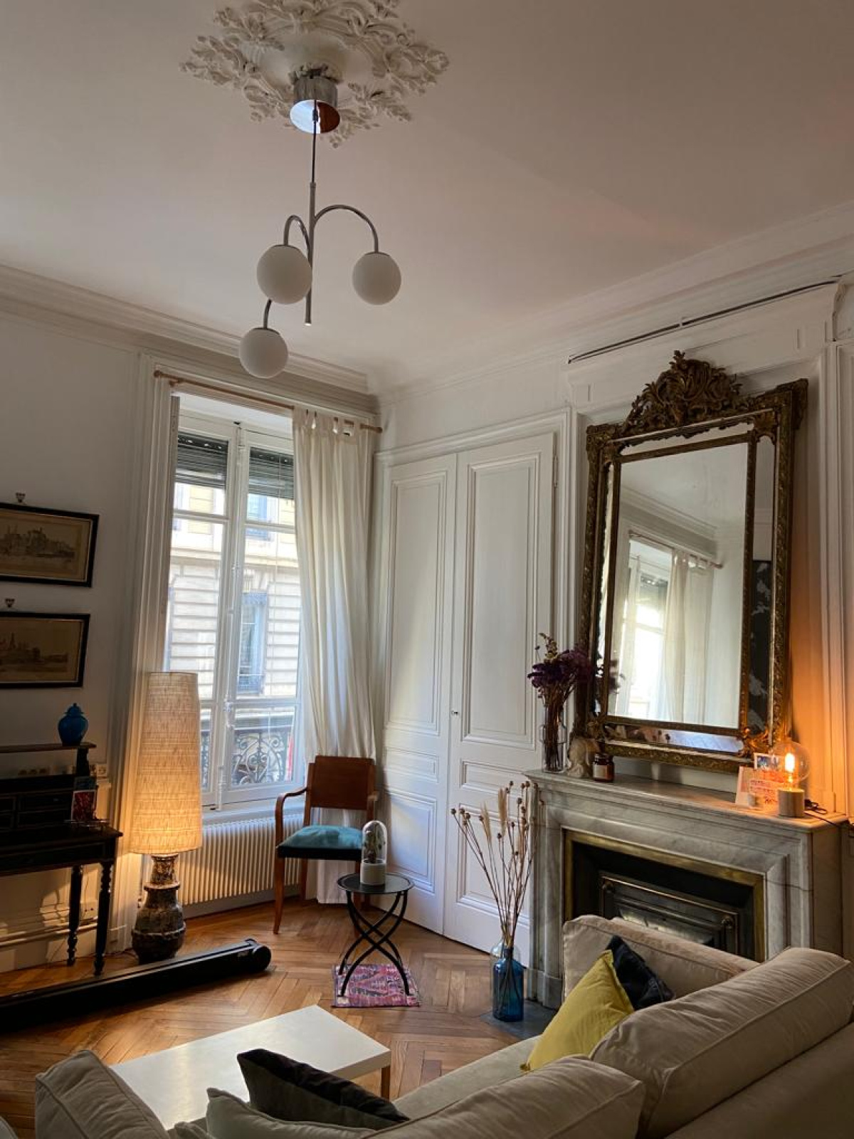 1 appartement de type T2 , de 80m2 , en entresol au 60 rue Pierre Corneille , 69006 LYON , se composant d'un grand hall en entrée , 1 chambre à coucher , 1 alcôve , 1 salon , cuisine non équipée , possibilité lave-linge , salle de bains avec baignoire et lavabo , wc indépendant , grandes fenêtres , eau chaude et chauffage par chaudière à gaz individuelle ,
