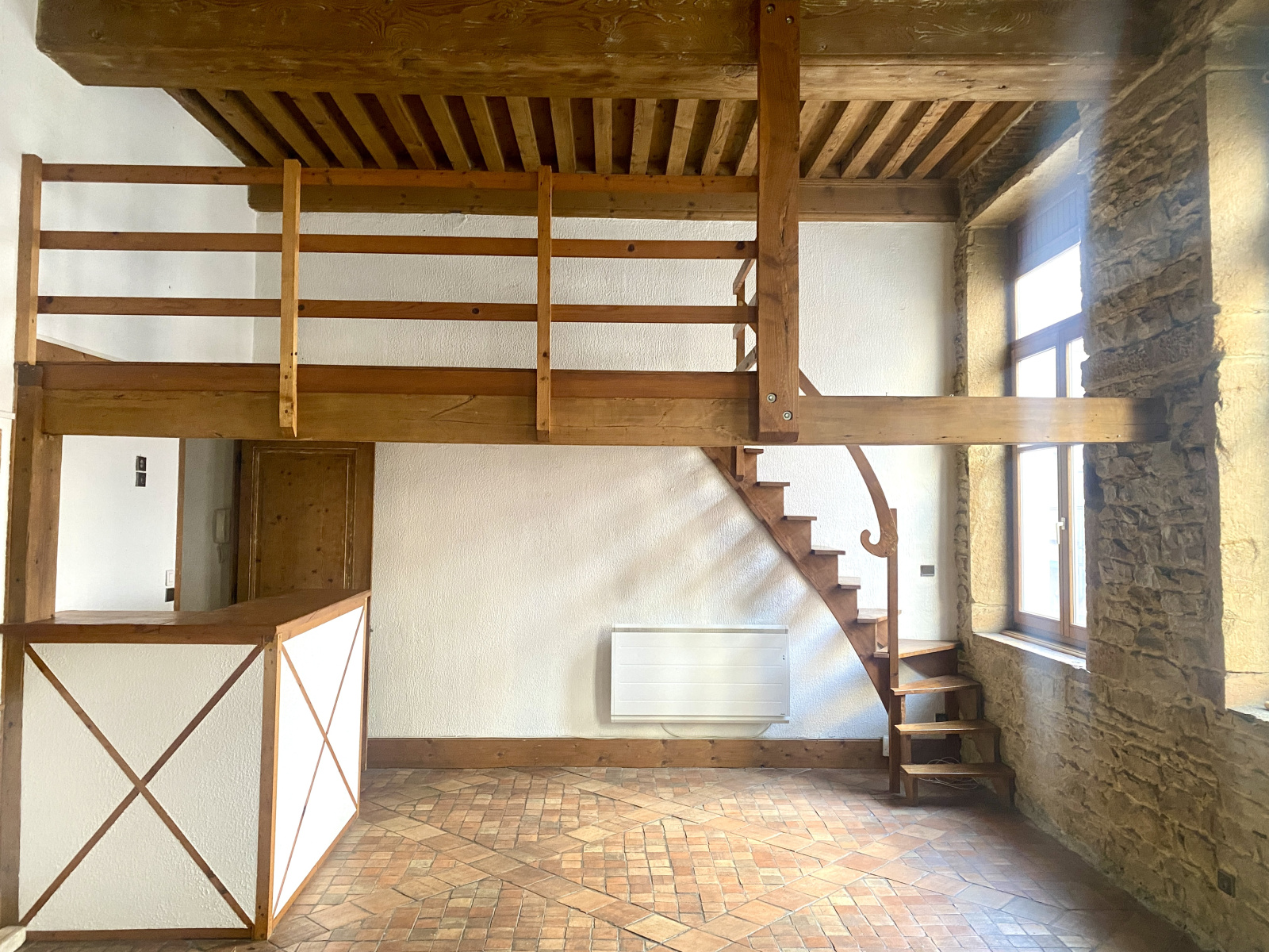 Sur le plateau de la Croix-Rousse, nous vous proposons ce T2 transformable en T3 à rénover. Logé au 1er étage sans ascenseur, il se compose d'une pièce de vie éclairée par 4 fenêtres avec une petite mezzanine, une cuisine semi-ouverte, une salle de bain avec un wc et une chambre de plain pied avec une mezzanine. Vous aurez la possibilité de créer une seconde chambre de plain pied afin d'obtenir un vrai T3. Vous profiterez d'une proximité immédiate avec la Grande Rue de la Croix-Rousse et toutes ses commodités.