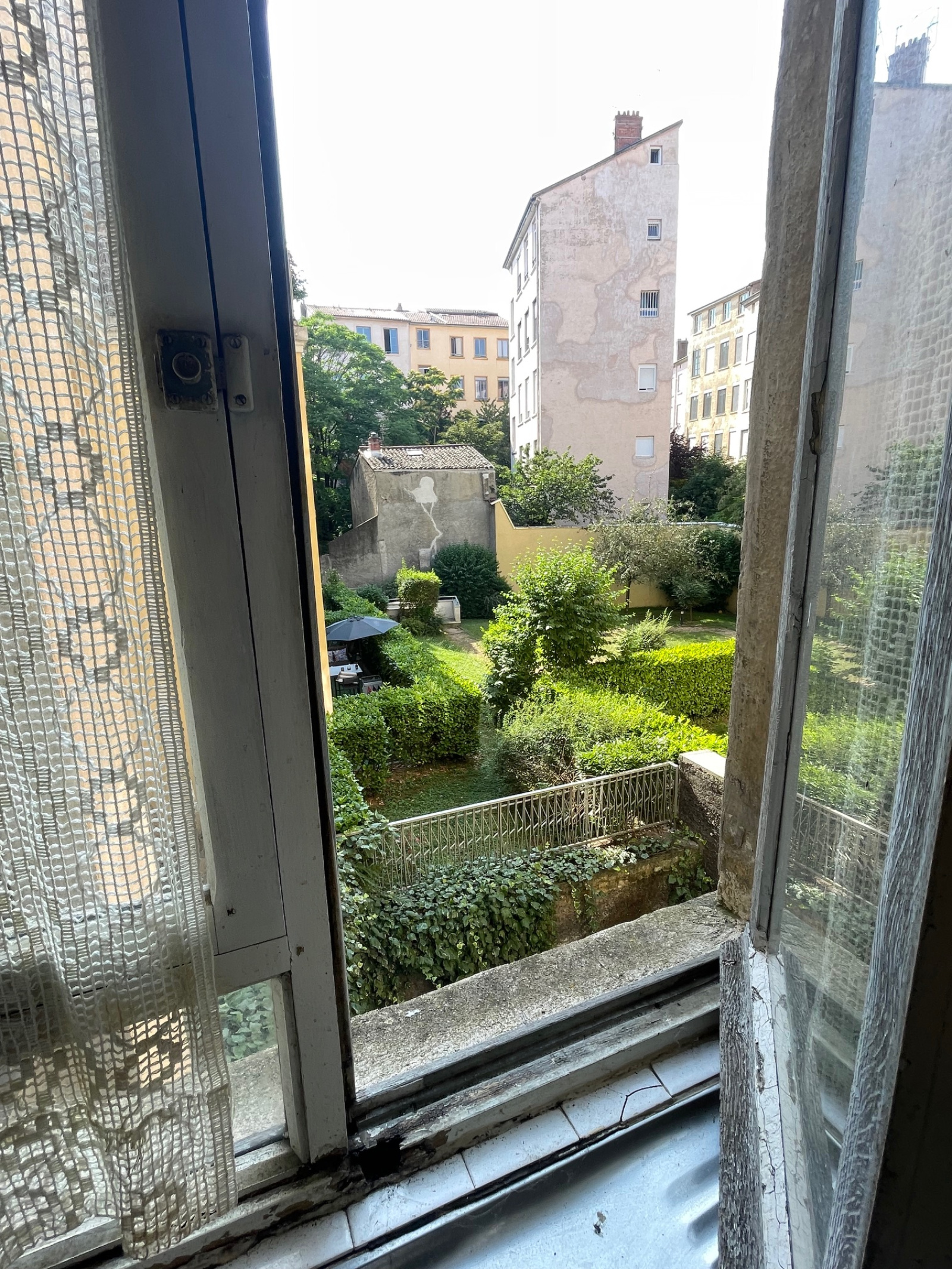 Au pied du Parc Ornano, veritable havre de paix, situé dans un immeuble ancien des pentes de la Croix Rousse très bien entretenu, un