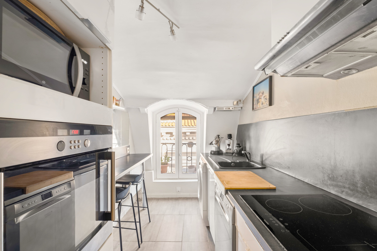 Dans un immeuble ancien au Métro Croix Paquet, 6ème et dernier étage, un appartement d’une surface de 68,25m2 carrez et 72,41m2 au sol. Il est composé d’une pièce de vie salon/salle à manger, une cuisine, deux chambres, une salle d’eau et d’un WC indépendant. Exposition est-ouest Une luminosité exceptionnelle tout au long de la journée et un calme absolu.