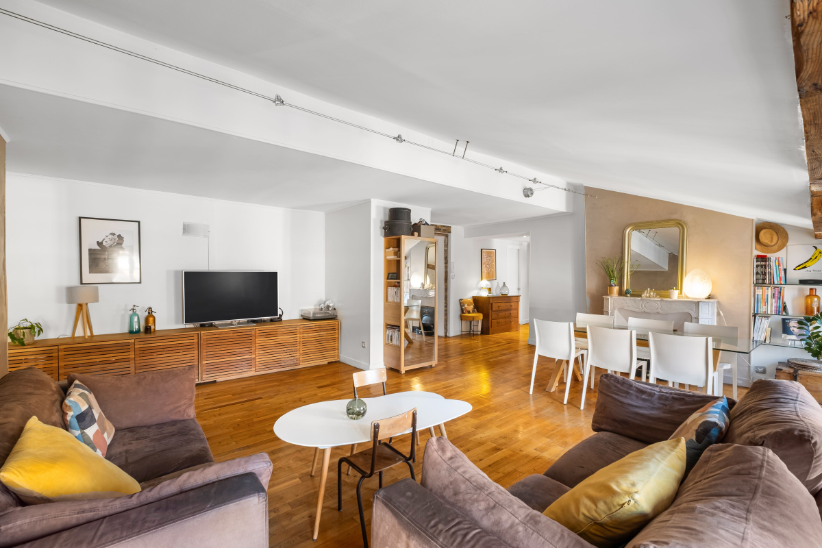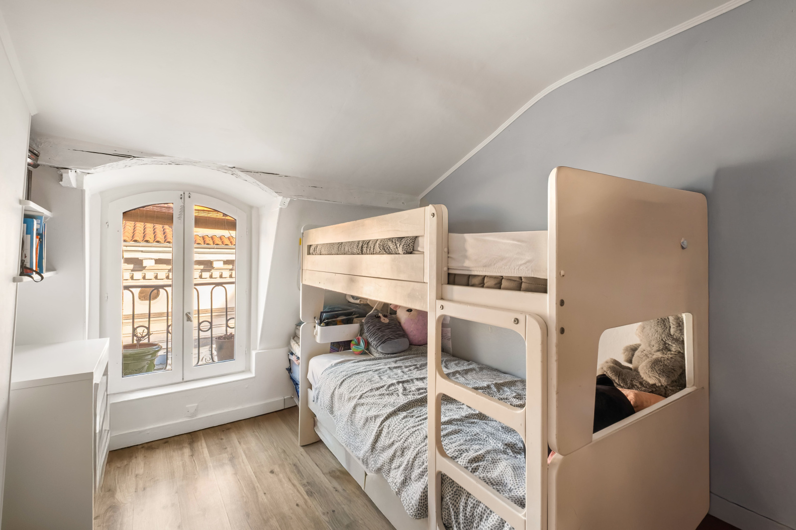 Dans un immeuble ancien au Métro Croix Paquet, 6ème et dernier étage, un appartement d’une surface de 68,25m2 carrez et 72,41m2 au sol. Il est composé d’une pièce de vie salon/salle à manger, une cuisine, deux chambres, une salle d’eau et d’un WC indépendant. Exposition est-ouest Une luminosité exceptionnelle tout au long de la journée et un calme absolu.