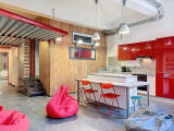 Traversant, il se compose d'un spacieux séjour avec une cuisine ouverte et une mezzanine donnant sur la rue ainsi que de deux chambres donnant sur une cour paisible. On y trouve également une vaste mezzanine servant d’espace TV et de rangements.